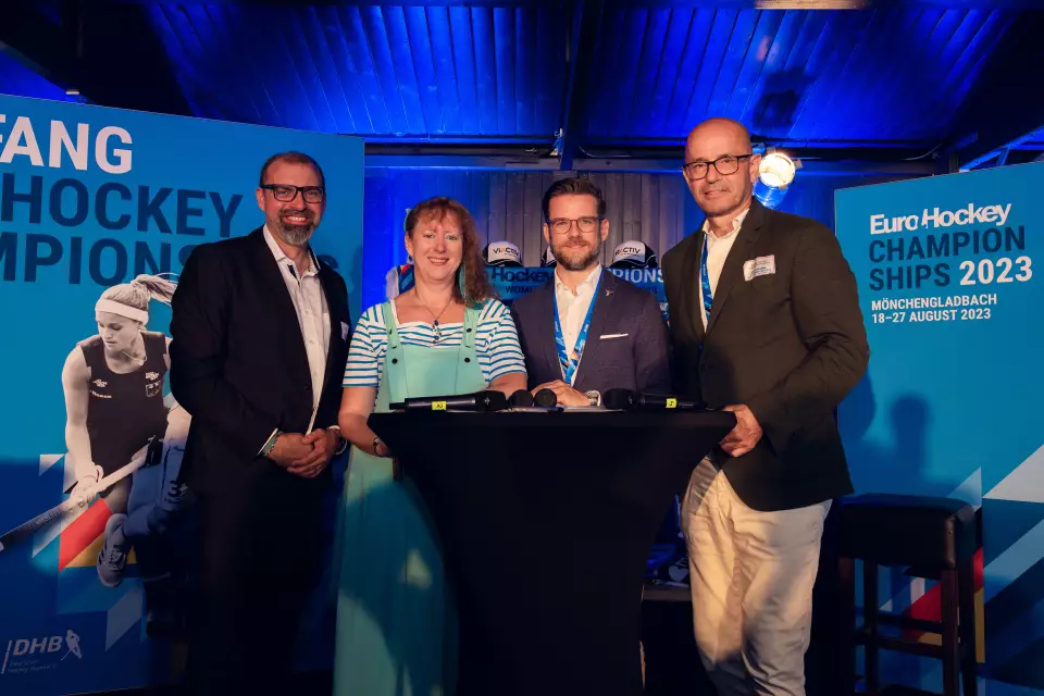 Henning Fastrich, Präsident des Deutschen Hockey-Bundes, ergänzte zur Bedeutung der Hockey-EM für den DHB: „Mit der Hockey-EM haben wir das erste Mal seit zwölf Jahren ein Hockey-Großereignis in Deutschland. Das Wichtige für uns ist, dass wir eine Plattform für den Hockeysport schaffen und dass wir diese Plattform selbst organisieren und gestalten können. Wir haben in den letzten Wochen und Monaten gemerkt, dass unsere Partner genau diese Art von Events und Sichtbarkeit brauchen. Durch die Präsenz bei ARD und ZDF sowie unsere Kooperation mit Sport1 haben wir erstmals seit Jahren auch wieder eine mediale Sichtbarkeit, die uns enorm hilft. Die Feldhockey-Europameisterschaft ist für uns der Startpunkt für eine Eventstrategie, die den Hockeysport auf stabile sportliche und wirtschaftliche Füße stellen soll.“