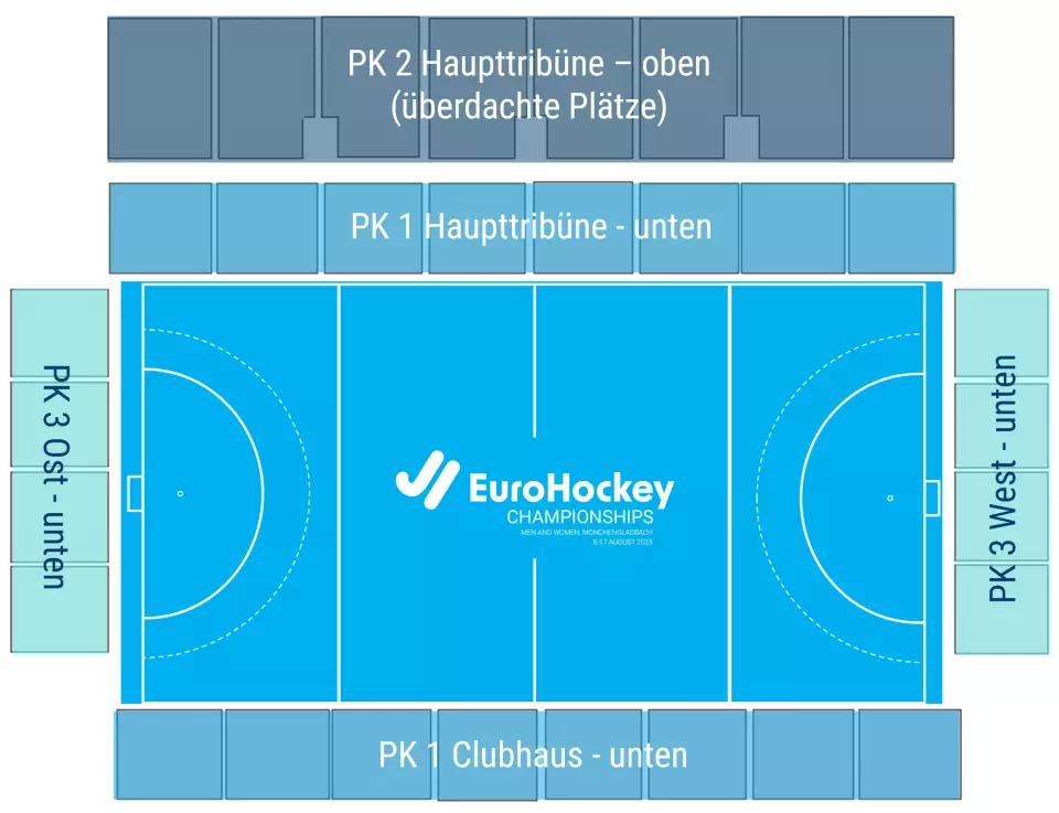 Welche Sitzmöglichkeiten gibt es? Wo befinden sich die verschiedenen Preiskategorien? Von wo aus hat man die beste Sicht auf das Spielfeld? Unser Sitzplan zeigt’s auf einen Blick: